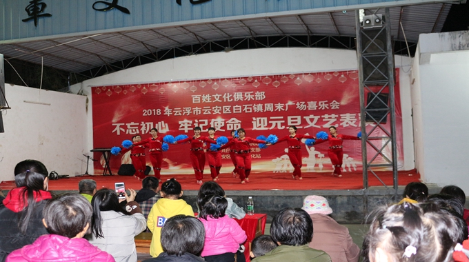 1227日晚,云安区“百姓文化俱乐部”——2018年云浮市云安区白石镇周末广场喜乐会暨“不忘初心 牢记使命”迎元旦文艺表演在上车村文化广场举行。