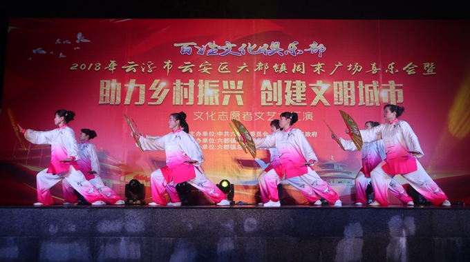1230日晚,云安区“百姓文化俱乐部”——2018年云浮市云安区六都镇周末广场喜乐会暨“助力乡村振兴 创建文明城市”文化志愿者文艺大汇演在谷塘村文化广场举行,两场活动吸引了附近大批村民前来观看演出。