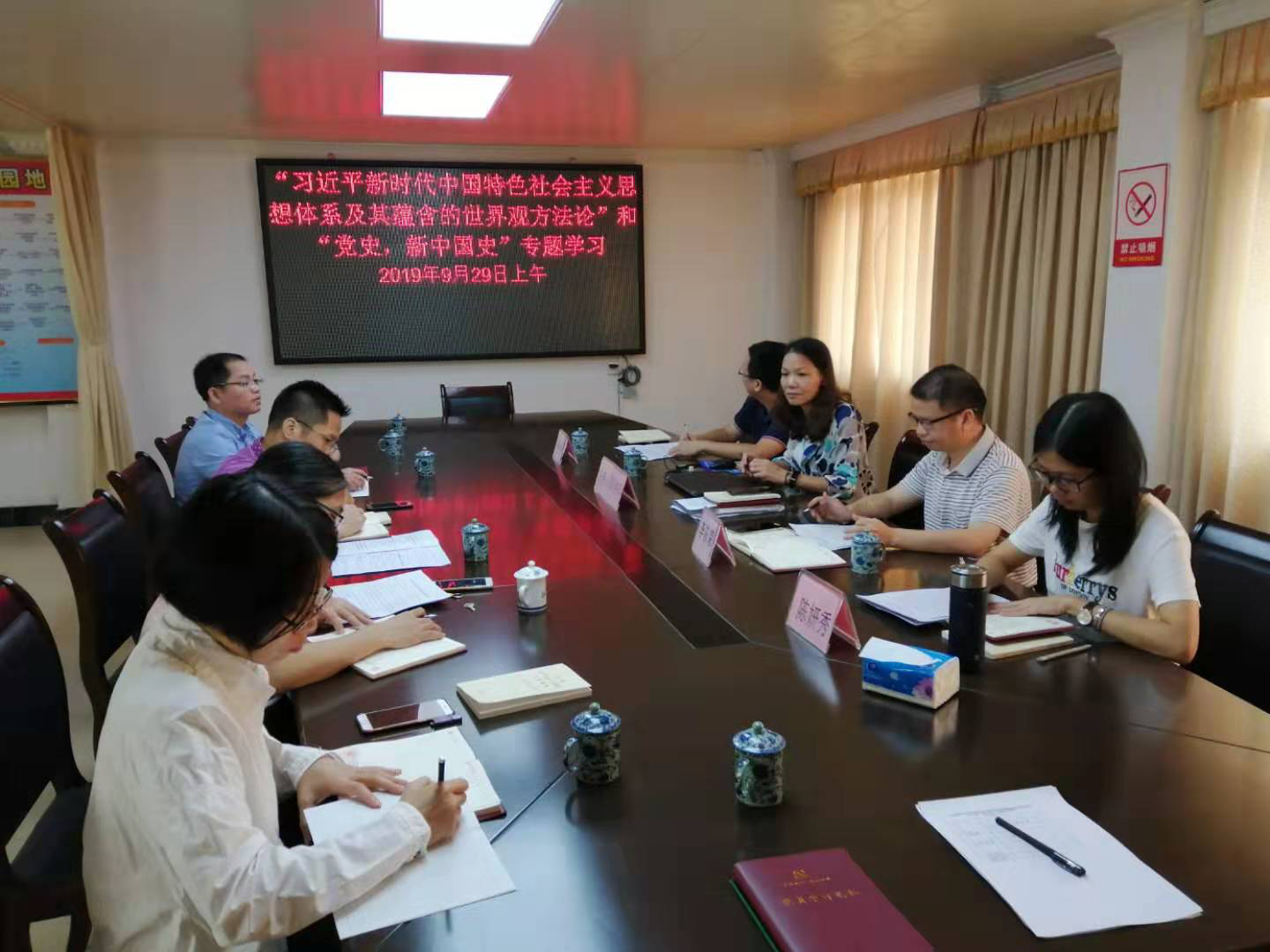 9月29日上午,云浮市云安区审计局组织全体党员开展“习近平新时代中国特色社会主义思想体系及其蕴含的世界观方法论”和“党史、新中国史”专题学习。区审计局副局长陈丽环同志主持,总审计师李东荣同志作主题发言,区审计局党员邓志军和陈妍秀同志分别作了交流发言。